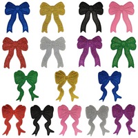 트렌디 한 4IN 다채로운 반짝이 자수 사이드 보우 패치 여성용 수제 다리미 PVC 패브릭 패치 청바지 의류